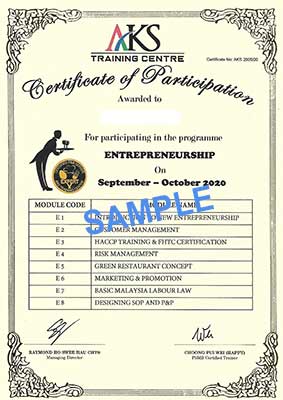 - 食品卫生管理和餐饮创业课程(在AKS Training Centre上课)
