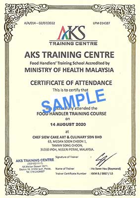 *此课程为马来西亚卫生部食物管课程委任的AKS(Kursus Latihan Pengendali Makanan, Food Handler Course)